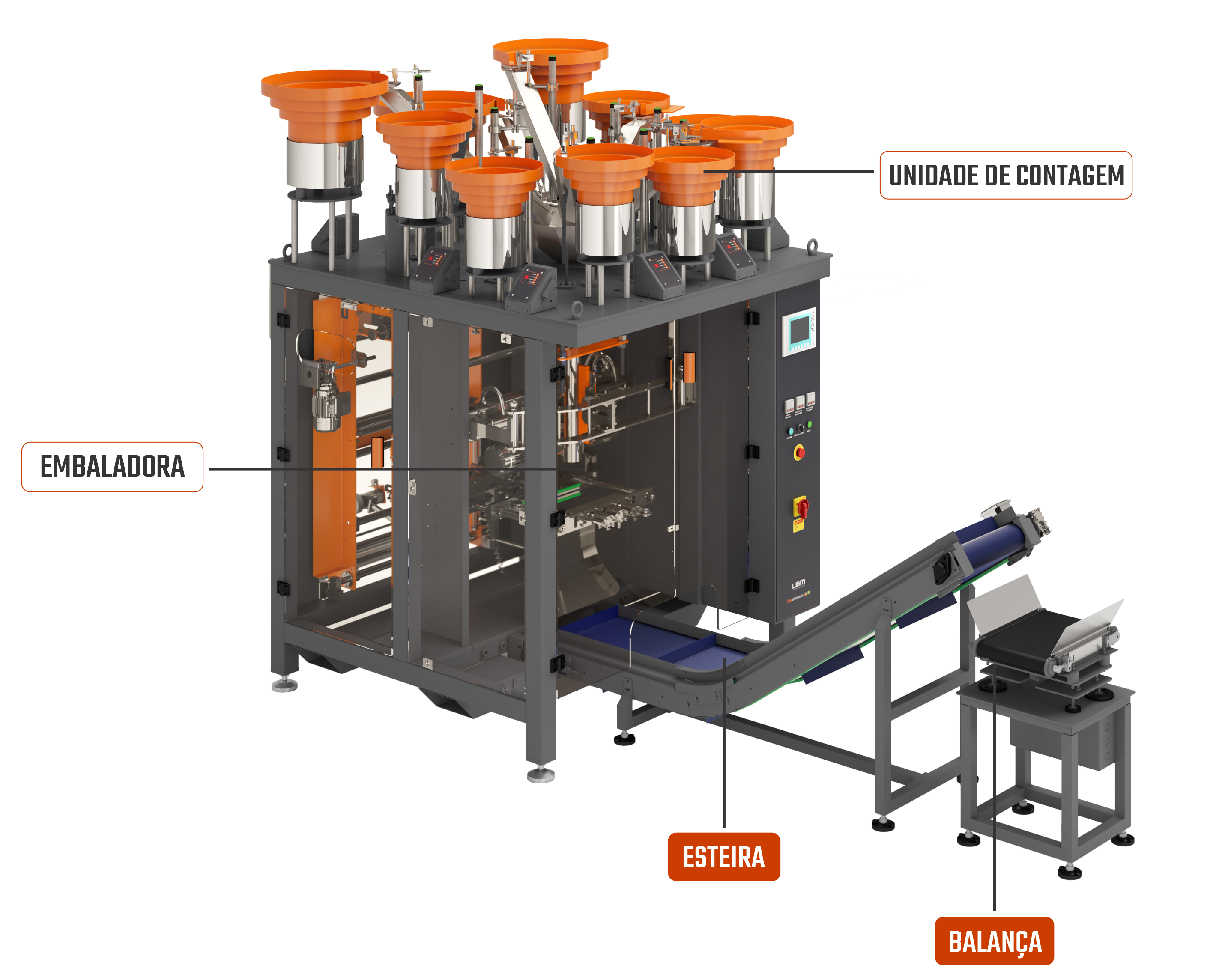 Balança de Conferência: realiza pesagem dinâmica em linha para verificar 100% das unidades sem interromper o fluxo. Enquanto o produto passa pelo módulo de pesagem, o sistema compara o peso com a faixa programada e rejeita automaticamente itens fora do padrão.
